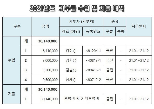 2021³âµµ ±âºÎ±Ý ¼öÀÔ ¹× ÁöÃâ ³»¿ª